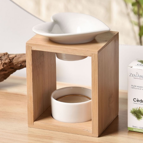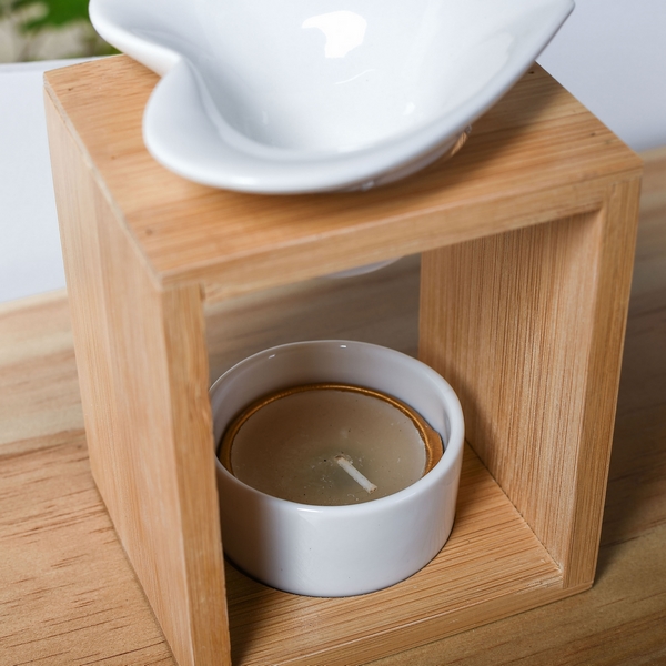 De Parfumbrander heeft een houten standaard met een keramische bak die geschikt is voor etherische oliën, huisgeuren of geurwas. Plaats dan gewoon een theelichtkaars in de keramische houder zodat de warmte de verspreiding activeert en het interieur van de kamer subtiel parfumeert.